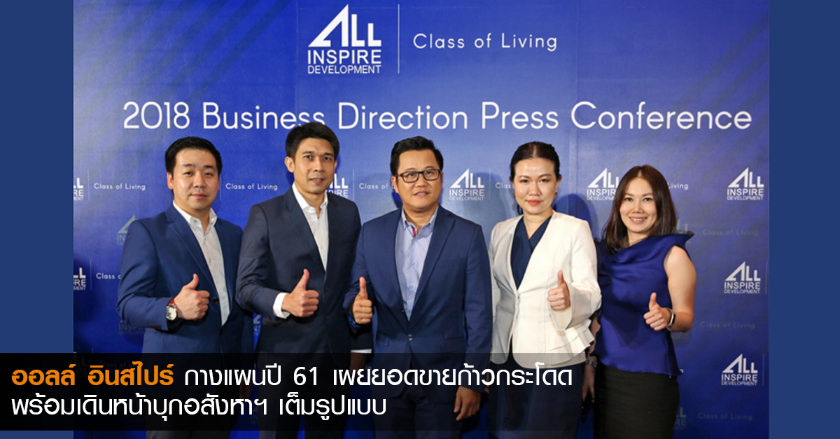 ออลล์ อินสไปร์ กางแผนปี 61 เผยยอดขายก้าวกระโดด พร้อมเดินหน้าบุกอสังหาฯ เต็มรูปแบบ
