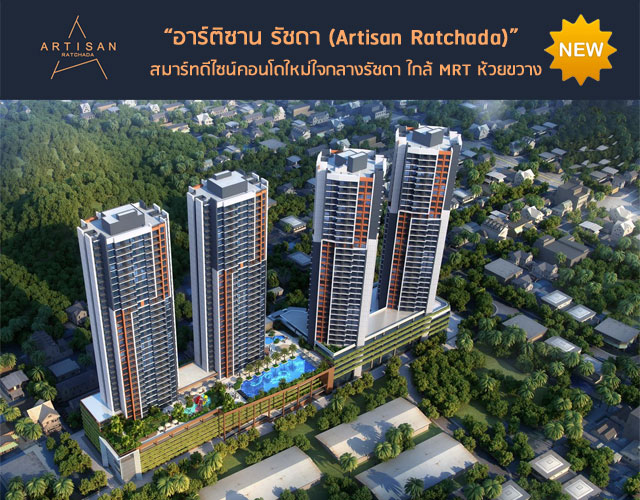 อาร์ติซาน รัชดา (Artisan Ratchada) คอนโดมิเนียม High-rise จากบริษัท บีจีวาย แอนด์ ทีเอฟดี พร็อพเพอร์ตี้ จำกัด มูลค่ากว่า 6,800 ล้านบาท เป็นสมาร์ทดีไซน์คอนโด บนใจกลางเมืองธุรกิจ (New CBD) ย่านรัชดา ใกล้รถไฟฟ้า MRT มาพร้อมระบบเทคโนโลยีสมัยใหม่ และสิ่งอำนวยความความสะดวกครบครันในโครงการ เตรียมเปิดให้จองประมาณเดือนมีนาคมนี้
