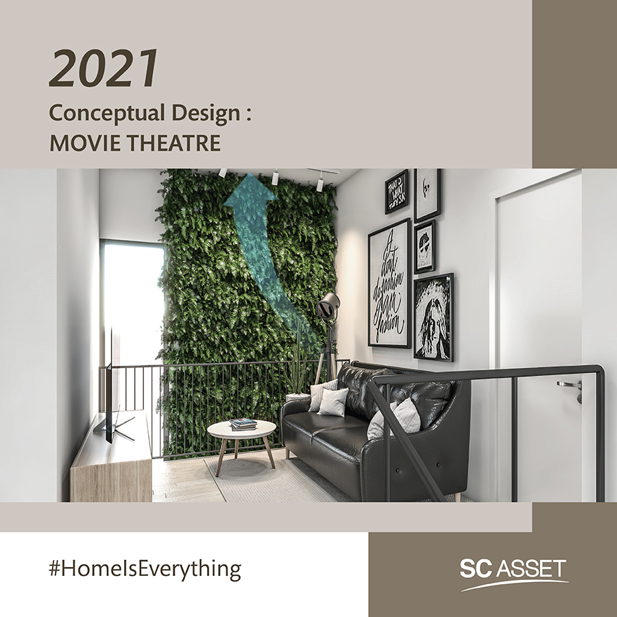 - ฟังก์ชั่น Movie Theatre มุมที่สร้างบรรยากาศโรแมนติคไม่เหมือนใคร สำหรับผ่อนคลายจากการทำงานทั้งวัน นอกจากมีพื้นที่สีเขียวแบบ Vertical Garden ยังนั่งสามารถชมภาพยนตร์อย่างเพลิดเพลินภายในบ้านเสมือนอยู่ในโรงภาพยนตร์