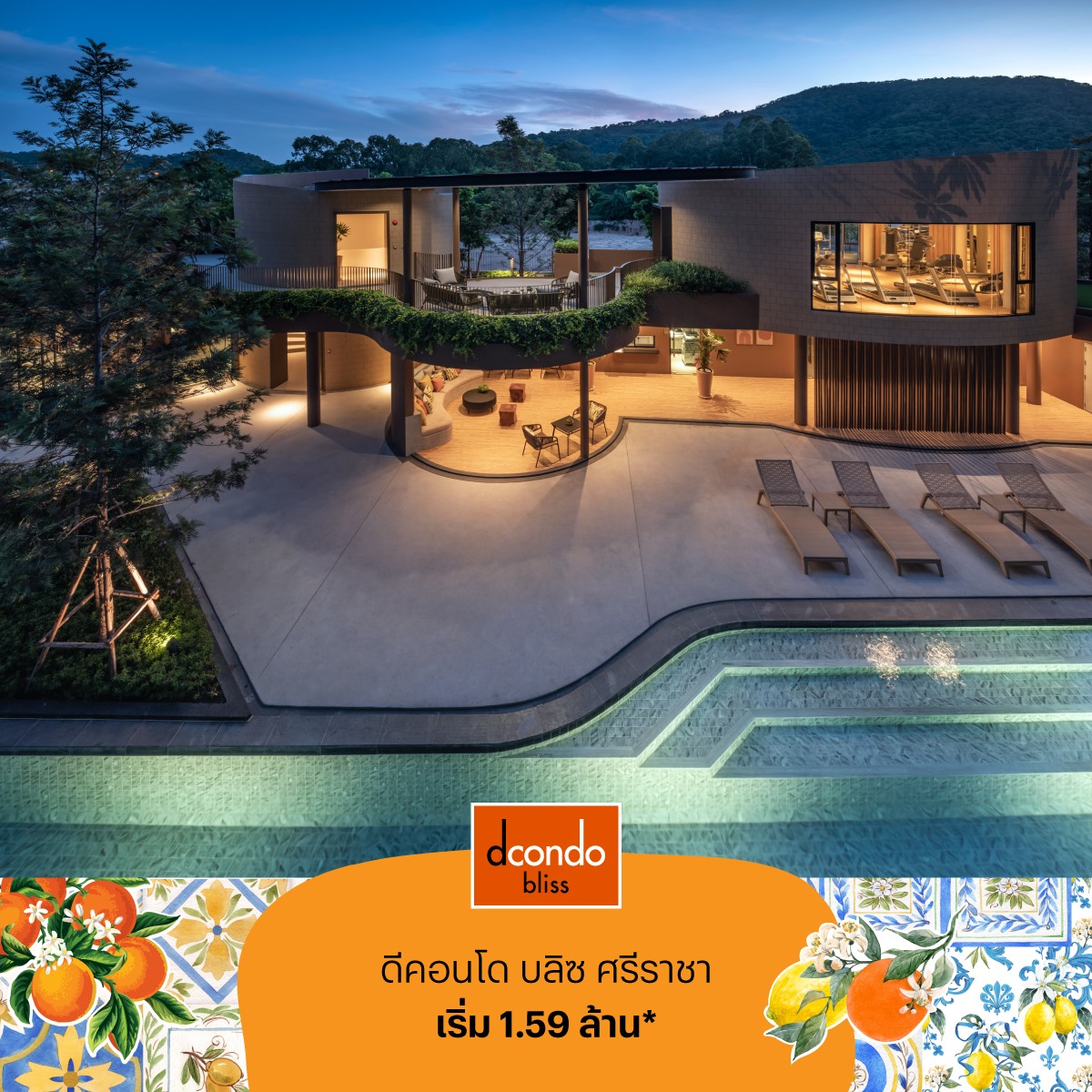 ดีคอนโด บลิซ ศรีราชา (dcondo Bliss Sriracha) คอนโดติด ม.เกษตร ศรีราชา และแหล่งงานมากมาย เดินทางง่าย สิ่งอำนวยความสะดวกครบครันปลอดภัย 24 ชั่วโมง อยู่เองก็สะดวกสบาย ลงทุนปล่อยเช่าต่อก็คุ้มค่า เริ่ม 1.59 ล้าน*