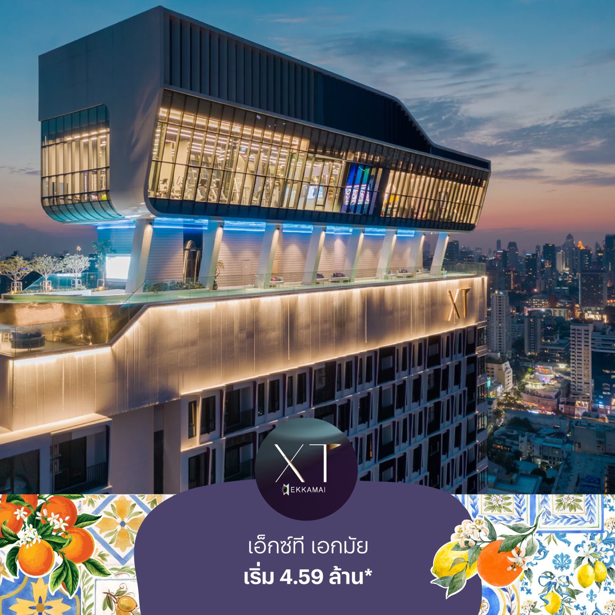 เอ็กซ์ที เอกมัย (XT Ekkamai) ไลฟ์สไตล์คอนโดใจกลางเอกมัย ที่โดดเด่นด้วยส่วนกลางขนาดใหญ่ ในทำเลที่ใกล้แหล่งแฮงค์เอาท์ชั้นนำ เดินทางสะดวกสบาย พร้อมรองรับไลฟ์สไตล์คนเมืองยุคใหม่ เริ่ม 4.59 ล้าน*