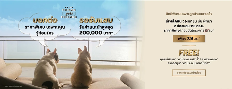 เมเจอร์ชวนลูกบ้าน "บอกต่อ...รอรับแสน" friend get friends โครงการ รีเฟล็คชั่น จอมเทียน บีช พัทยา