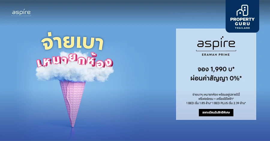 เอพี (ไทยแลนด์) จัดโปรโมชั่นคอนโดโครงการ "แอสปาย เอราวัณ ไพร์ม (Aspire Erawan Prime)" โปรเหมา เหมา จ่ายเบาๆ เหมายกห้อง พร้อมอยู่ปลายปีนี้ จอง 1,990 บ.* ผ่อนค่าสัญญา 0% นาน 6 เดือน* ฟรีเฟอร์ครบ + เครื่องใช้ไฟฟ้า*