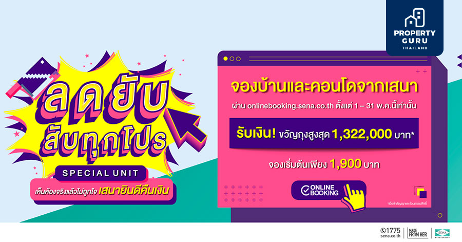 พร้อมเปย์ Special Unit! SENA อัดฉีดยาแรงดึงดีมานด์ไตรมาส 2/64 สวนกระแสโควิดคลื่นระลอกใหม่ ล่าสุดจัดเซตบ้าน-ทาวน์โฮม - คอนโด 40 โครงการคุณภาพหลากหลายโลเคชันครอบคลุมทั่วกรุง ส่งแคมเปญกระตุ้นตลาด "ลดยับ สับทุกโปร" ช้อปเมื่อไหร่ก็ ช้อปได้ทุกที่ทุกเวลาผ่าน Online Booking จองเพียง 1,900 บาท รับเงิน!ขวัญถุงสูงสุด 1,322,000 บาท เริ่มตั้งแต่วันนี้ – 31 พ.ค. 64 เท่านั้น