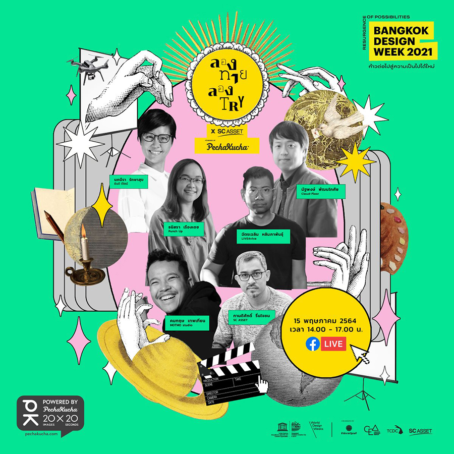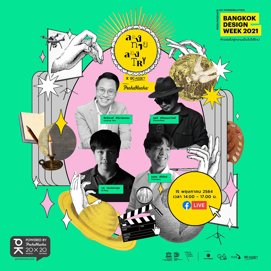 สำหรับผู้สนใจ ‘ลองทาย ลองTRY x SC ASSET, Powered by PechaKucha’ สามารถติดตามความเคลื่อนไหวและกิจกรรมที่น่าสนใจได้จาก