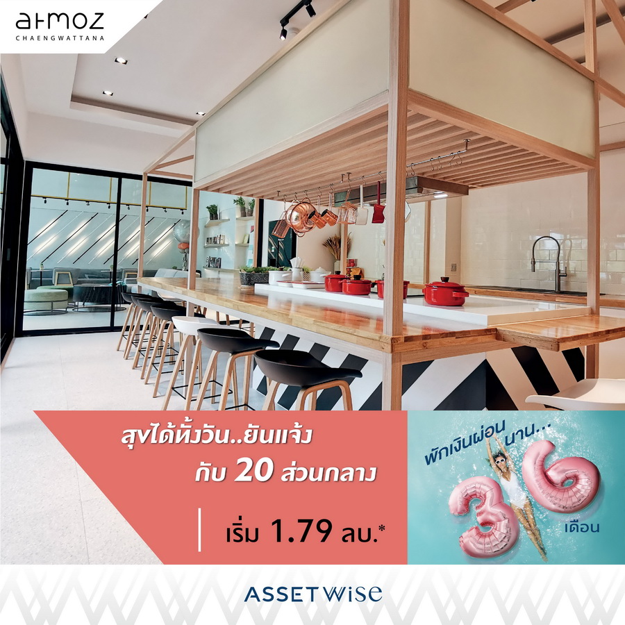 บริษัท แอสเซทไวส์ จำกัด (มหาชน) ผู้พัฒนาอสังหาริมทรัพย์ที่มุ่งมั่นสร้างสรรค์ที่อยู่อาศัยคุณภาพ ส่งโปรโมชั่นสุดแรงครั้งยิ่งใหญ่ “แอสเซทไวส์ พักเงินผ่อนยาวววว 36 เดือน” แบ่งเบาค่าใช้จ่ายในการผ่อน คลายความกังวล ไม่ต้องวางเงินดาวน์ พร้อมเข้าอยู่ได้เลย เพราะแอสเซทไวส์ ผ่อนให้ทั้งต้นและดอกเบี้ย นาน 36 เดือน รวมแล้ว 3 ปี