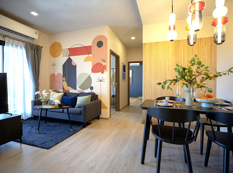 นอกจากนี้ โครงการได้กำหนดพื้นที่ส่วนกลางให้มีทั้งส่วนที่อนุญาตและไม่อนุญาตให้สัตว์เลี้ยงใช้งาน ขึ้นอยู่กับลักษณะการใช้งานจริงเพื่อสร้างความสมดุลในการอยู่อาศัยระหว่างลูกบ้านที่เลี้ยงสัตว์และไม่เลี้ยงสัตว์อย่างลงตัว เช่น จุดสัญจรหลักโซนล็อบบี้ สัตว์เลี้ยงจะต้องอยู่ในรถเข็นหรืออุปกรณ์เคลื่อนย้ายเท่านั้น ช่วยสร้างความอุ่นใจในด้านความปลอดภัยและสุขอนามัยภายในโครงการ ขณะที่ภายในห้องพักอาศัยยังมีการออกแบบฟังก์ชันให้เอื้อต่อพฤติกรรมและความปลอดภัยของสัตว์เลี้ยง อาทิ ราวกันตกบริเวณระเบียงห้องชุดที่มีระยะห่างระหว่างซี่ไม่เกิน 7.5 เซนติเมตร ป้องกันสัตว์เลี้ยงที่มีขนาดเล็กมุดลอดจนเกิดอันตราย และกำหนดขนาดสัตว์เลี้ยงไม่เกิน 15 กิโลกรัม เพื่อให้สัตว์เลี้ยงสามารถใช้ชีวิตอยู่ภายในห้องพักได้อย่างไม่อึดอัด