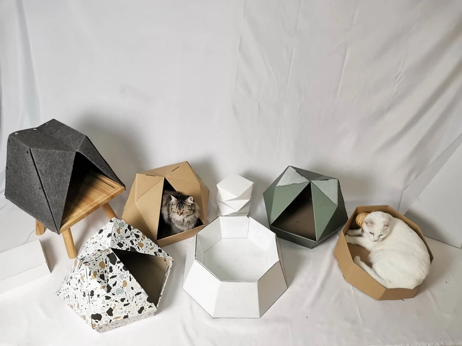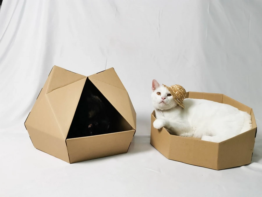 ที่นอนแมวกระดาษรักษ์โลกมีลูกเล่นที่การพับ จากร้าน POLYGAMI