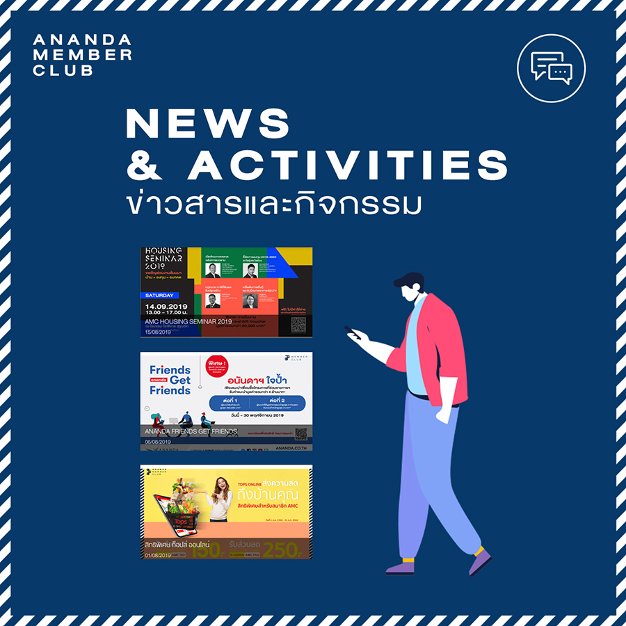 พิเศษสุด...อนันดาฯ ยังมอบสิทธิพิเศษให้กับ สมาชิก Ananda Member Club ที่ซื้อแบบประกันภัยตามที่กำหนดจากเมืองไทยประกันชีวิต โดยสามารถติดตามรายละเอียดได้ที่ www.ananda.co.th/amc/privilege