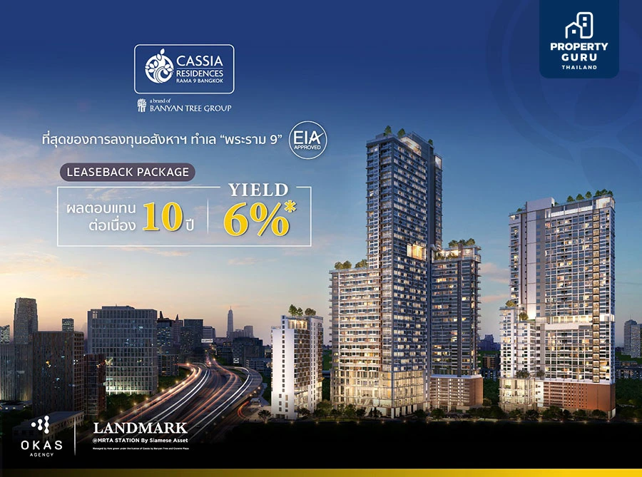 นำเสนอโครงการ CASSIA RESIDENCES RAMA 9 BANGKOK และเปิดตัวแพ็คเกจสำหรับนักลงทุน LEASEBACK PACKAGE ที่ผู้ลงทุนจะได้รับผลตอบแทนสูงสุดปีละ 6% ต่อเนื่องตลอด 10 ปี โดย OKAS Agency พร้อมสิทธิพิเศษสำหรับนักลงทุน ได้แก่ สิทธิ์เข้าพัก 15 คืนต่อปี และสิทธิประโยชน์ Sanctuary Club จาก CASSIA By Banyan Tree เริ่มเพียง 4.29 ลบ.