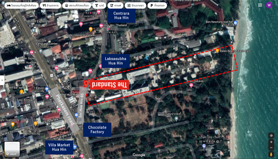 ส่วนพิกัดทำเล แน่นอนว่าต้องไม่ธรรมดา “เดอะ สแตนดาร์ด หัวหิน” ตั้งอยู่บนไพร์มโลเคชั่นสุดไพรเวท บนแปลงที่ดินหายากใจกลางเมือง และใจกลางหาดหัวหินที่ขึ้นชื่อว่าทรายขาวละเอียดที่สุด ไม่แพ้เมืองตากอากาศชั้นนำระดับโลก อยู่ในซอยหัวหิน 65 (ถนนนเรศดำริห์) ห่างจากถนนเพชรเกษมเพียง 120เมตร ติดริมหาดแบบ บีช ฟร้อนท์ สามารถเดินลงหาดได้ทันทีจากโรงแรม และที่สำคัญ คือ อยู่ในจุดศูนย์กลางของตัวเมืองหัวหิน สามารถเดินเท้าหรือขับรถเข้าเมืองไปพบสีสันสเน่ห์ของหัวหินได้อย่างง่ายดาย