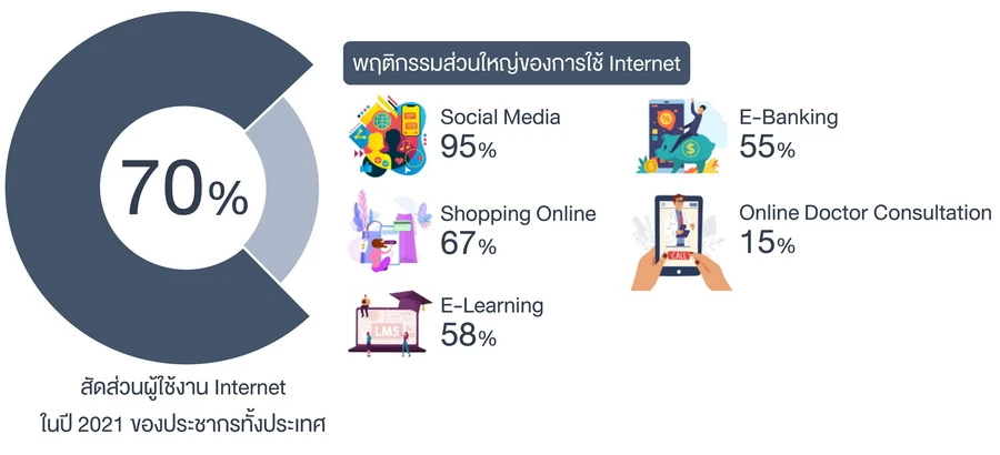 จากผลการสำรวจของ ทีม SDC จากกลุ่มตัวอย่างของผู้พักอาศัยในชุมชนภายใต้การบริหารของ บริษัท แอล พี พี พรอพเพอร์ตี้ มาเนจเมนท์ จำกัด (LPP) บริษัทในเครือของ LPN พบว่า พฤติกรรมของผู้พักอาศัยในชุมชนให้ความสำคัญกับช่องทางออนไลน์ในการติดต่อสื่อสาร/รับข่าวสาร และพบพฤติกรรมการใช้ช่องทางออนไลน์อื่นๆ ในการทำกิจกรรมซื้อ-ขายสินค้า เช่น สั่งซื้อสินค้าออนไลน์กว่า 90% ใช้บริการสั่งซื้ออาหารกว่า 80% ซึ่งสอดคล้องกับข้อมูลของ สำนักงานพัฒนาธุรกรรมทางอิเล็กทรอนิกส์ (ETDA) และ We Are Social ร่วมกับ Hootsuite ที่ระบุว่า ในยุค 5.0 ประเทศไทยมีจำนวนผู้ใช้งาน Internet ในปี 2021 มากกว่า 46 ล้านคน (เพิ่มขึ้นเกือบ 3 เท่าจากปี 2009) ของประชากรทั้งประเทศที่ 66 ล้านคน