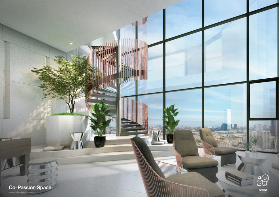 ส่วน Facilities ภายในโครงการถูกออกแบบขึ้นมาเพื่อรองรับไลฟ์สไตล์คนรุ่นใหม่ โดยเฉพาะกลุ่ม Gen Millennial ที่ทำงานประจำออฟฟิศและทำงานแบบ Work from Home ดังนั้นพื้นที่ส่วนกลางส่วนใหญ่จะเปิดให้บริการตลอด 24 ชั่วโมง เช่น Co-Passion Space, Fitness และยังมี White Ion Bath Onsen แยกชาย-หญิง เพิ่มความสดชื่น และผ่อนคลายความเหนื่อยล้าจากการทำงาน รวมถึงสระว่ายน้ำแบบ Infinity Edge ระบบ Ozone และ Salt Chlorine พร้อมพื้นที่ออกกำลังกายภายนอกอาคารสำหรับ Jogging Track, Multiscape และ Playing Court โดยควบคุมการใช้ Facilities ด้วยระบบ IOT เพื่อช่วยลดค่าใช้จ่ายส่วนกลาง เพราะหากไม่มีการใช้งานไฟจะเปิดแค่ 50%