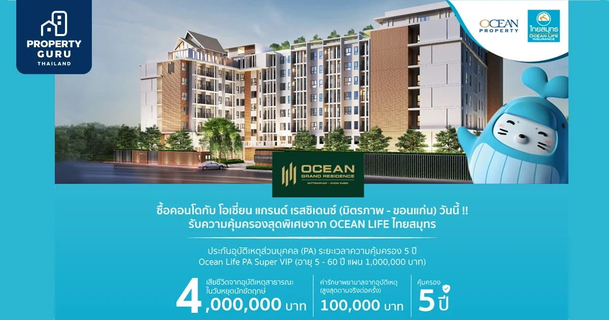 โครงการ "โอเชี่ยน แกรนด์ เรสซิเดนซ์ มิตรภาพ-ขอนแก่น" เป็นคอนโดมิเนียมโลว์ไรส์ 8 ชั้น จำนวน 236 ยูนิต ตั้งอยู่ทำเลศักยภาพใจกลางเมืองขอนแก่น ติดถนนมิตรภาพ ที่เน้นการออกแบบดีไซน์ทันสมัยแวดล้อมด้วยสิ่งอำนวยความสะดวก พื้นที่ส่วนกลาง Rooftop Fitness Center และ Infinity Edge Pool รวมถึง Green Space Garden พร้อมอุ่นใจกับระบบรักษาความปลอดภัยที่ได้มาตรฐานแบบมืออาชีพ ครบทุกความต้องการตอบโจทย์ทุกไลฟ์สไตล์การอยู่อาศัยของคนรุ่นใหม่ได้อย่างลงตัว