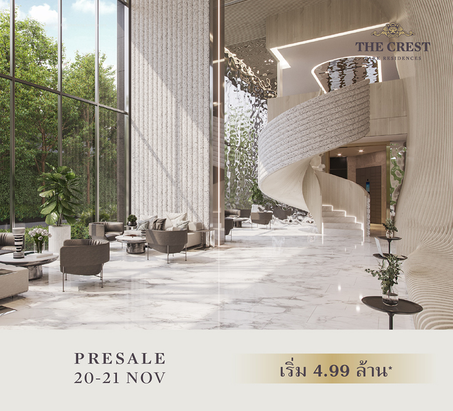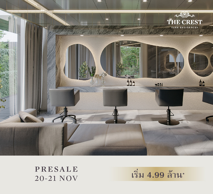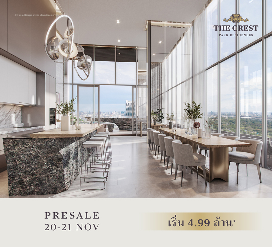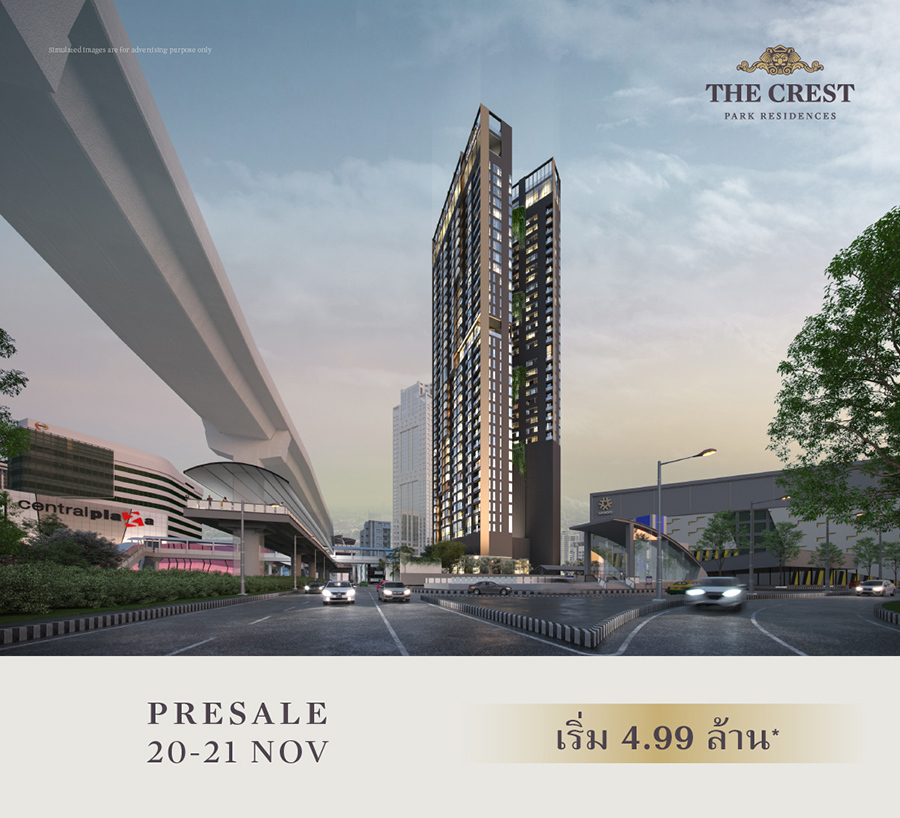 เตรียมพบกันในงาน PRESALE ลักชัวรี่คอนโดมิเนียม โครงการใหม่ The Crest Park Residences บนย่านห้าแยกลาดพร้าว วันที่ 20-21 พฤศจิกายน นี้ ความสมบูรณ์แบบของธรรมชาติสู่การตีความไลฟ์สไตล์เมืองแนวใหม่ที่ไม่เหมือนใคร ราคาเริ่ม 4.99 ล้านบาท* เลือกห้องวิวสวย สิทธิพิเศษสูงสุด 900,000 บาท พิเศษ 20 ยูนิตแรก จองพร้อมทำสัญญาในงาน รับ iPhone 13 Pro 128 GB* ลงทะเบียนรับสิทธิพิเศษในการได้ที่ https://m.scasset.com/6CnR