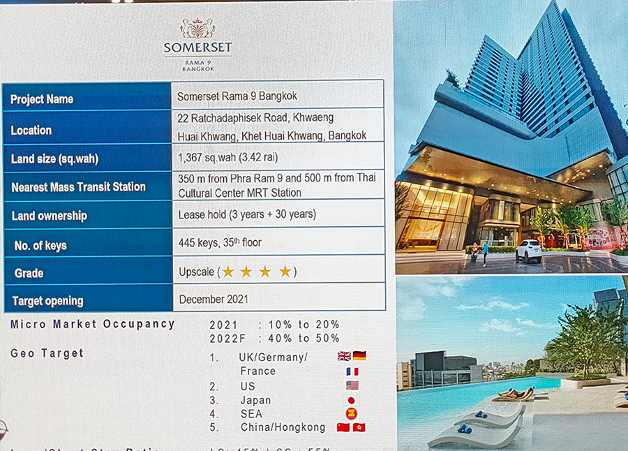 โดยสำหรับแผนการขยายธุรกิจใหม่ "เซอร์วิสอพาร์ทเม้นท์" (Serviced Apartments) ทางบริษัทฯ มองว่าเป็นรูปแบบธุรกิจที่สามารถสร้างรายได้ในระยะยาวให้แก่บริษัท ซึ่งบริษัทพร้อมพิจารณาขยายธุรกิจนี้ให้ใหญ่ขึ้นในอนาคต นอกจากนี้ยังมองเห็นโอกาสการเติบโตของธุรกิจและการท่องเที่ยวของไทย เพราะไม่ว่าอย่างไรประเทศไทยก็ยังเป็นศูนย์กลางทางการค้าของภูมิภาคเอเชียตะวันออกเฉียงใต้ และมีทรัพยากรทางธรรมชาติและศิลปวัฒนธรรมที่สวยงามเป็นที่ดึงดูดแก่นักท่องเที่ยวมากขึ้นทุกปี ทำให้ธุรกิจเซอร์วิสอพาร์ทเม้นท์ (Serviced Apartments) มีแนวโน้มเติบโตขึ้นอย่างต่อเนื่อง