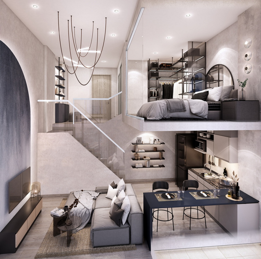 ออกแบบอาคารภายใต้แนวคิด LIVE high in LOFT mosphere โดยเน้นเส้นสายแนวตั้งที่ดูมั่นคง เป็นองค์ประกอบหลักของเส้นสายอาคาร และไล่เฉดสีจากโทนสีเข้มไปจนถึงโทนสีอ่อน ซึ่งให้ความรู้สึกเสมือนระดับพื้นดิน หรือชั้นหินค่อย ๆ ไล่ระดับสีสูงขึ้นเป็นชั้นเหนือพื้นดิน จนถึงชั้นบนสุดของอาคาร โดยใช้โทนสีอ่อนเปรียบเสมือนท้องฟ้า และก้อนเมฆ ในบรรยากาศ Loft ที่มีประตู หน้าต่าง ฝ้าเพดานสูงโปร่ง โดยมีรูปแบบห้องที่หลากหลาย ในราคาเริ่มต้นเพียง 1.7 ล้านบาท เริ่มจากห้อง Studio ขนาด 28.0 ตร.ม. จนถึงห้องใหญ่สุด 2 Bedrooms ขนาด 64.5 ตร.ม. และอีกหนึ่งไฮไลท์ของโครงการนี้ คือ ห้องลอฟท์ พื้นที่ 2 ชั้น ขนาด 47.0 - 48.0 ตร.ม. ซึ่งมีเพียง 24 ยูนิตเท่านั้น