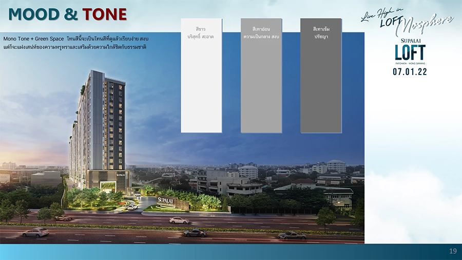 ด้านนายชัยจักร วทัญญู ผู้อำนวยการฝ่ายอาวุโส ฝ่ายสร้างสรรค์และพัฒนาผลิตภัณฑ์ บริษัท ศุภาลัย จำกัด (มหาชน) กล่าวว่า บริษัทฯ พร้อมตอบโจทย์คนรุ่นใหม่ที่หลงไหลสไตล์ลอฟท์ สร้างภาพลักษณ์ใหม่ โดยมีการปรับโฉมการออกแบบและงานตกแต่งภายใน - ภายนอกให้เข้ากับกลุ่มคน NEW GEN มากยิ่งขึ้น สู่โครงการ ศุภาลัย ลอฟท์ รัชดาฯ - วงศ์สว่าง คอนโดฯ High Rise 18 ชั้น ประกอบด้วย 3 อาคาร จำนวน 1,302 ยูนิต