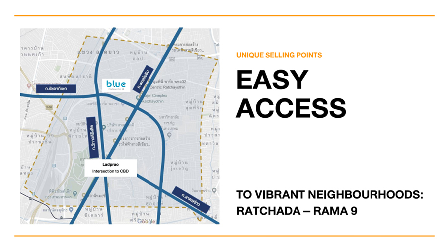 โครงการตั้งอยู่บริเวณใกล้แยกรัชโยธิน ซึ่งเป็นที่ยอมรับในเรื่องศักยภาพของทำเล รวมถึงเป็น CBD ทางตอนเหนือของกรุงเทพมหานคร และมีการพัฒนาอย่างต่อเนื่อง ทั้งระบบคมนาคม แหล่งงาน และสำนักงานต่างๆ ซึ่งจะช่วยเสริมศักยภาพของทำเลให้เติบโตยิ่งขึ้น เชื่อมต่อการเดินทางสู่ใจกลางเมืองได้อย่างสะดวกสบาย ล้อมรอบด้วยถนนสายหลักอย่าง ถนนพหลโยธิน ถนนวิภาวดีรังสิต และถนนรัชดาภิเษก ทั้งยังใกล้กับรถไฟฟ้า BTS สถานีรัชโยธิน เพียง 1.5 กิโลเมตร และรถไฟฟ้า BTS สถานีพหลโยธิน 24 เพียง 1.7 กิโลเมตรเท่านั้น รวมถึงรถไฟฟ้าสายสีเหลืองที่กำลังจะแล้วเสร็จในอนาคตอันใกล้ อีกทั้งยังรายล้อมไปด้วยแหล่งรวมไลฟ์สไตล์และสถานที่สำคัญมากมายอีกด้วย