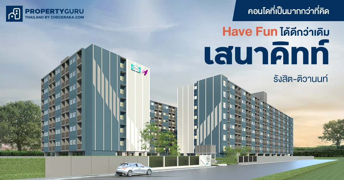 คอนโดที่เป็น มากกว่าที่คิด Have Fun ได้ดีกว่าเดิม "เสนาคิทท์ รังสิต-ติวานนท์" คอนโดมิเนียมโลว์ไรซ์ สูง 8 ชั้น ตั้งอยู่บนเนื้อที่ 6 ไร่เศษ จำนวน 3 อาคาร ทั้งหมด 735 ยูนิต มีแบบห้องให้เลือก 3 แบบ คือ แบบ 1 ห้องนอน 26 ตาราเมตร มี Walk-in Closet ในห้องนอน ส่วนอีกแบบ 1 ห้องนอน 26 ตารางเมตร เน้นห้องครัวกว้างติดระเบียง และแบบ 2 ห้องนอน 38 ตารางเมตร เรียกว่าตอบโจทย์ลูกค้าที่มีบัดเจทจำกัดและต้องการมีที่อยู่อาศัยเป็นของตัวเอง ห้องทุกยูนิตถูกดีไซน์กั้นเป็นสัดส่วนทั้งฟังก์ชันและพื้นที่ส่วนกลางลงตัว ตอบโจทย์การพักผ่อนได้อย่างเต็มอิ่มและปลดปล่อยชีวิตได้หลังเวิร์คฮาร์ดมาทั้งวัน