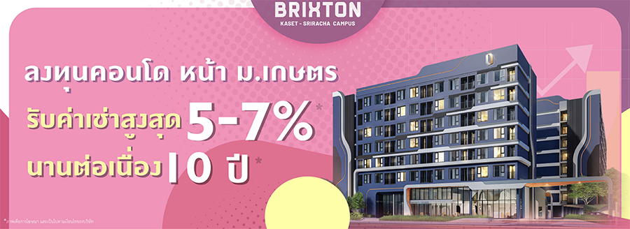 บริกซ์ตัน เกษตร ศรีราชา แคมปัส (Brixton Kaset - Sriracha Campus) คอนโดใหม่เลี้ยงสัตว์ได้แห่งแรกใน EEC ชีวิตยุคใหม่ ติดถนนสุขุมวิท ตรงข้าม ม.เกษตรศาสตร์ ศรีราชา อยู่เองก็ดี ลงทุนก็ปัง รับผลตอบแทนสูงสุด 7%* นานต่อเนื่อง 10 ปี* เป็นคอนโด Low-rise 8 ชั้น ออกแบบโดยนำเส้นสายจากลวดลายของคลื่นทะเลมาเป็นแรงบันดาลใจผสมผสานในรูปแบบของ Modern Art Geonetric พร้อมพื้นที่ส่วนกลางที่ออกแบบมาให้คุณ Active ได้เต็มที่ ราคาเริ่มต้น 1.59 ล้านบาท