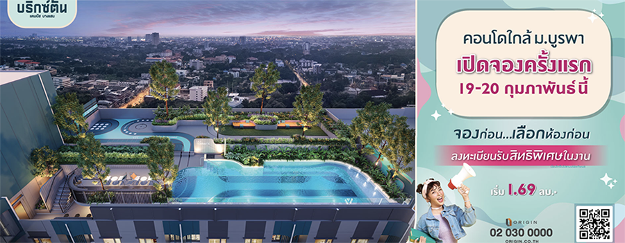 เปิดราคาพิเศษช่วง PRE-SALE บริกซ์ตัน แคมปัส บางแสน (BRIXTON CAMPUS BANGSAEN) คอนโดใหม่ใจกลางซอยสดใสทำเลดี๊ย์ดี ติด ม.บูรพา พร้อมห้อง SMART FUNTION ที่ตอบโจทย์คนรุ่นใหม่ในไลฟ์สไตล์ต่างกัน เปิดชมห้องตัวอย่างครั้งแรก 12 กุมภาพันธ์นี้ ลงทะเบียน รับสิทธิพิเศษ ก่อนใคร เปิดจองครั้งแรก 19 - 20 ก.พ. นี้ เริ่ม 1.69 ล้านบาท