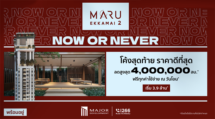 อีก 1 โครงการจากค่ายเมเจอร์ มารุ เอกมัย 2 (Maru Ekkamai 2) ที่เป็นคอนโดลี้ยงสัตว์ได้ ที่ยังคงมาพร้อมโปรโมชั่น "NOW OR NEVER" โค้งสุดท้าย ราคาดีที่สุด หมดแล้วหมดเลย