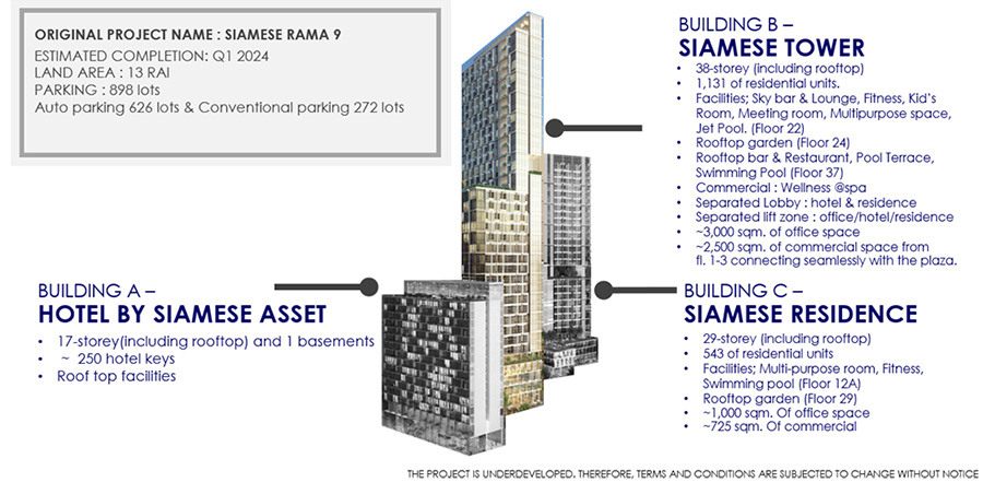 ยูนิตที่พักอาศัยรวม 1,980 ยูนิต ประกอบด้วย Tower A ส่วนพื้นที่โรงแรม