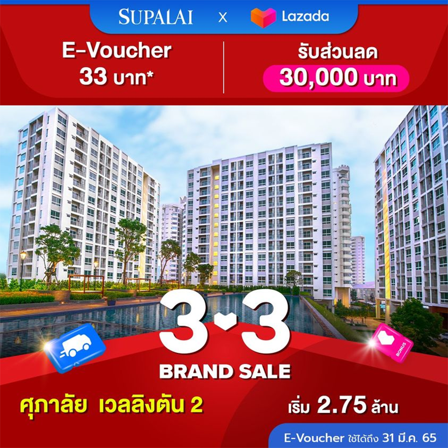 3.3 : Brand Sale Sulapai x LAZADA รับส่วนลดเพิ่ม 30,000 บาท* เพียงซื้อ E-Voucher 33 บาท ใน Lazada Application พร้อมรับของแถมอีกมากมาย ตั้งแต่วันนี้ 1-31 มี.ค. 65 เท่านั้น โครงการที่ร่วมโปรโมชั่น อาทิ