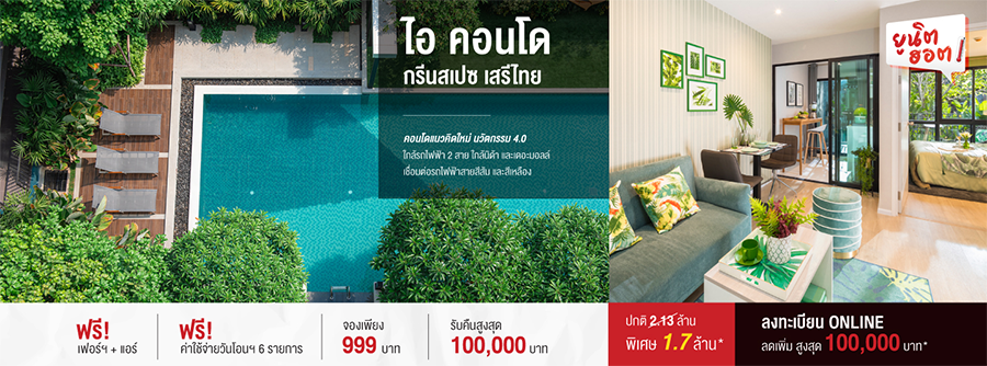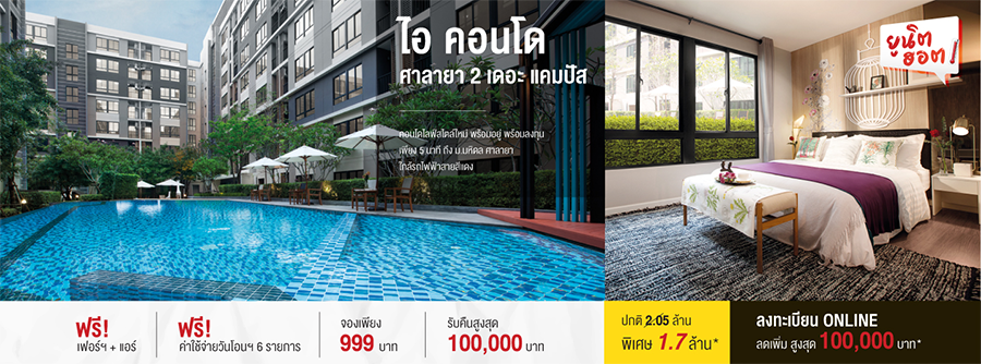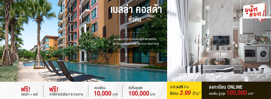 โปรโมชั่น ยูนิตฮอต ล็อตพิเศษ กับคอนโดพร้อมอยู่ 4 ทำเล เดอะเลค กัลปพฤกษ์ - วุฒากาศ, ไอคอนโด ศาลายา 2 เดอะ แคมปัส, ไอ คอนดด กรีนสเปซ เสรีไทย, เบลล่า คอสต้า หัวหิน พร้อมข้อเสนอพิเศษสุดฮอต รับคืนสูงสุด 200,000 บาท* เริ่ม 1.7 ล้านบาท* กู้เต็ม 100%