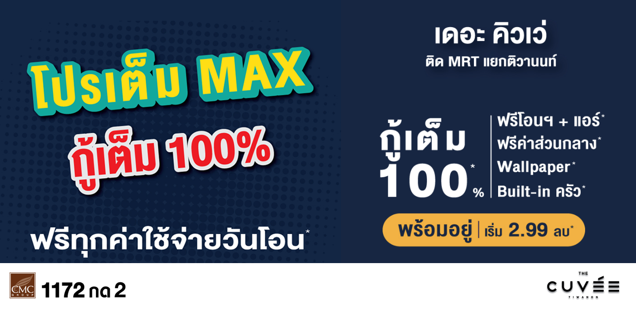 เดอะคิวเว่ ติวานนท์  คอนโดหรู ติด MRT แยกติวานนท์ ความลงตัว ที่คุณเลือกได้ ห้องใหญ่ ครัวแยกเป็นสัดส่วน เพียง 2.99 ล้านบาท* พิเศษ!! จัดโปรเต็ม MAX