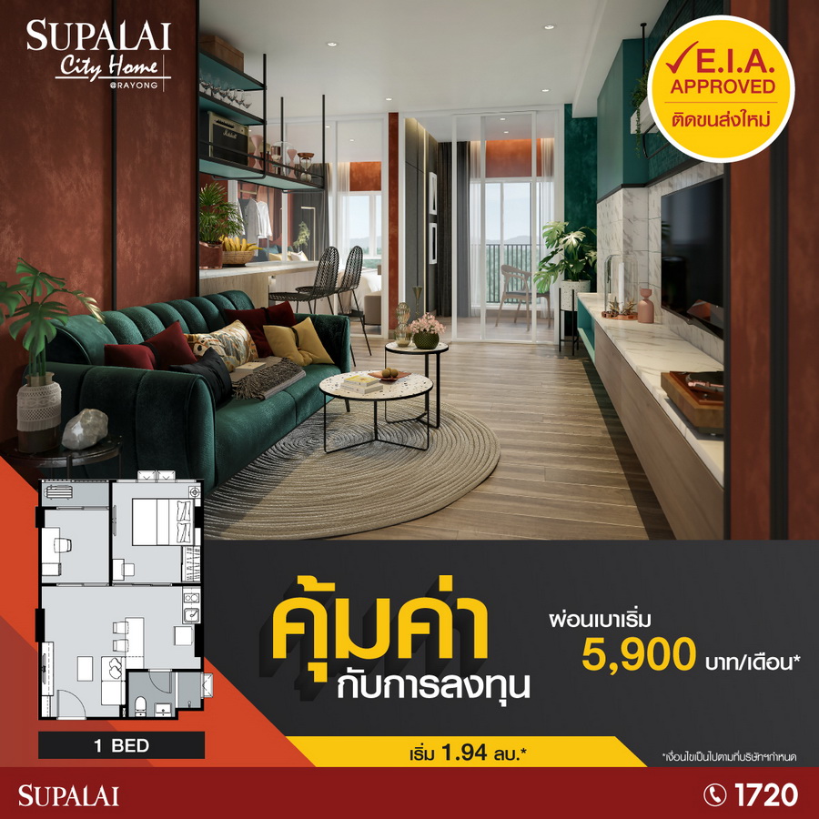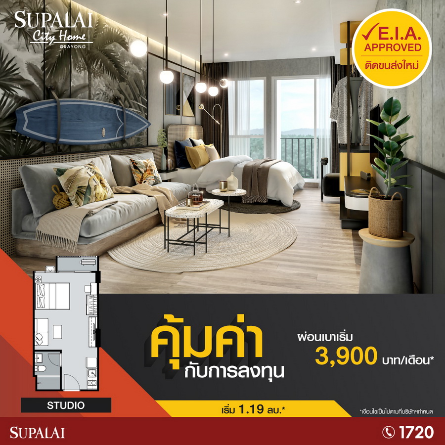 ศุภาลัย ซิตี้โฮม ระยอง ที่สุดแห่งคอนโดมิเนียมทำเลทองเมืองนิคมอุตสาหกรรม EEC ระยอง บนพื้นที่ 3 ไร่ ติดขนส่งใหม่ เพียง 200 เมตร เชื่อมต่อทุกทำเลสะดวกสบายทุกการเดินทาง ใกล้ถนนสุขุมวิท และถนนเลี่ยงเมืองบายพาส 36 สะท้อนความเป็นเมืองอุตสาหกรรมด้วยสถาปัตยกรรมการตกแต่งสไตล์ Industrial Loft ให้ความรู้สึกดิบและเท่ห์ มิติใหม่ของไลฟ์สไตล์ที่แตกต่าง ซึ่งโครงการได้รับอนุมัติผ่านการประเมินผลกระทบสิ่งแวดล้อม หรือ “EIA Approved” จากสำนักงานนโยบายและแผนทรัพยากรธรรมชาติและสิ่งแวดล้อม (สผ.) เป็นที่เรียบร้อย พร้อมสร้างความเชื่อมั่นให้กับลูกค้าที่สนใจโครงการนี้