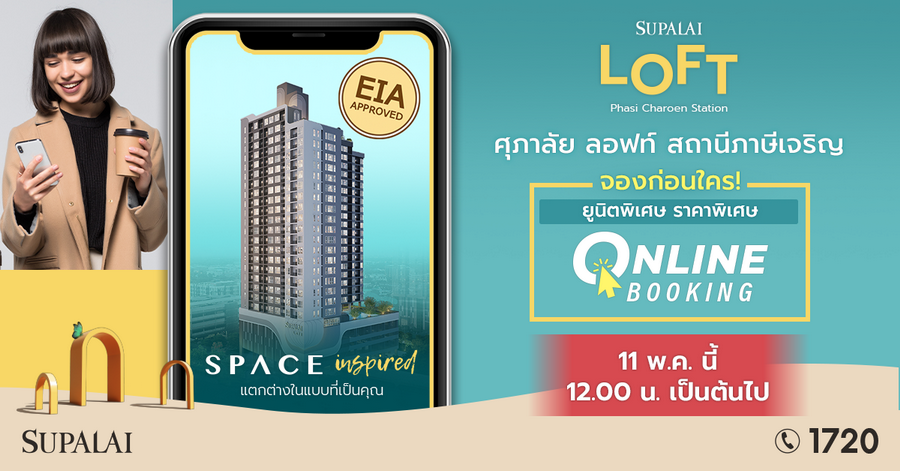 พร้อมสัมผัสความเรียบง่าย สร้างสรรค์ทุกแรงบันดาลใจ ปลดล็อคทุกพื้นที่การใช้งานกับคอนโดฯ ทำเลทองแห่งอนาคต โครงการศุภาลัย ลอฟท์ สถานีภาษีเจริญ พร้อมเปิดจองเป็นเจ้าได้ก่อนใครในรอบ Online Booking วันที่ 11 พ.ค. 2565 เวลา 12.00 น. ในราคาและเงื่อนไขสุดพิเศษ โดยในวันงานเปิดให้จองทั้งหมด 4 ชั้น ประกอบด้วย ชั้น 8, ชั้น 14, ชั้น 24 และ ชั้น 25 (เฉพาะยูนิตที่บริษัทกำหนด)