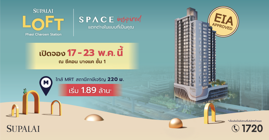 - ปลดล็อคทุกพื้นที่ ค้นพบแรงบันดาลใจใหม่ ใช้ชีวิตในแบบที่เป็นคุณ กับศุภาลัย ลอฟท์ สถานีภาษีเจริญ คอนโดฯที่ออกแบบตามสไตล์มินิมอล ลอฟท์ ขนาด 1 - 3 ห้องนอน ให้พื้นที่กว้างกว่าใคร เริ่มต้น 30.5 - 88.0 ตร.ม.