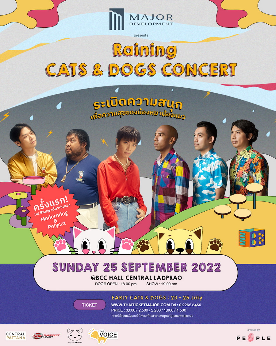 เมเจอร์ ดีเวลลอปเม้นท์ จัดคอนเสิร์ต “RAINING CATS & DOGS” 25 ก.ย.นี้ พร้อมมอบสิทธิ์พิเศษสำหรับลูกบ้านคนรักแมว-หมา ร่วมสนุกไปกับ POLYCAT และ MODERNDOG