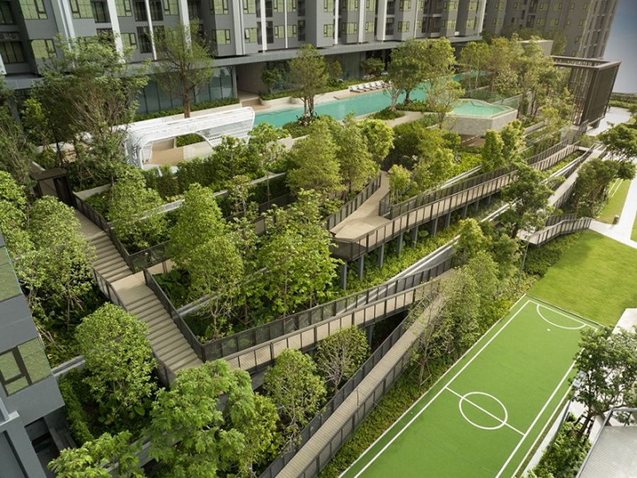 นอกจากนี้ ยังพร้อมด้วย พื้นที่ส่วนกลางที่รองรับทั้งไลฟ์สไตล์คนเมืองอีกมากมาย อาทิ Welcome Foyer, Waiting Lounge, Outdoor Terrace, Playground, Hiking Trail, Half Football Court, Half Basketball Court, Jogging Track, Private Cave, Jacuzzi, Pool Pavilion, Kid’s Pool, Scenic Pool, Sauna, Steam, Co-Working & Living Space, Social Lounge, Private Meeting Room, Multi Leisure Room, Gym, Private Gym – Group Virtual Bike, Personal Virtual Bike, Group Training, Personal Training, Sky Outdoor Garden, Sky Courtyard เป็นต้น ท่ามกลางบรรยากาศธรรมชาติอันเขียวชอุ่มของโครงการ