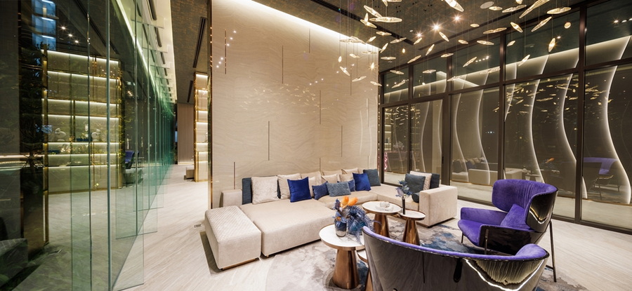 นอกจากนี้ พื้นที่ส่วนกลางชั้น 40 สูงที่สุดในย่าน ให้ผู้อยู่อาศัยได้แวดล้อมไปด้วยธรรมชาติที่ทำให้รู้สึกสงบและผ่อนคลายได้อย่างต่อเนื่องกับ “Panoramic Sky Lounge” สเปซกล่องแก้วใสขนาดใหญ่ ที่รองรับฟังก์ชัน Co-Working & Co-Living เชื่อมต่อทุกมิติของไลฟ์สไตล์คนเมืองยุคใหม่ได้อย่างไม่มีสะดุด ทำให้ชีวิตประจำวันกับการทำงานผสานกันอย่างลงตัว โดยได้รับแรงบันดาลใจจาก The Café by Aman ร้านอาหารที่ซ่อนตัวอยู่ในพื้นที่สวนสีเขียวใจกลางย่านธุรกิจของกรุงโตเกียว และ “Panoramic Sunken Lounge” ส่งมอบการผ่อนคลายพร้อมวิวมุมสูง แรงบันดาลใจจาก Pamukkale ประเทศตุรกี เปิดรับวิวและมุมมองที่สูงสุดในย่าน มิติใหม่ของการพักผ่อน ให้ผู้อยู่อาศัยได้สัมผัสถึงความสงบ และวิวเมืองได้แบบ 360 องศา