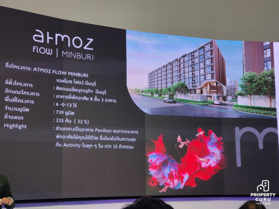 ล่าสุด บริษัทฯ ได้พัฒนาโครงการที่อยู่อาศัย โดยนำโครงการภายใต้แบรนด์แอทโมซ (ATMOZ) ซึ่งเป็นหนึ่งในแบรนด์ไฮไลท์ของบริษัทฯ มาต่อยอดในทำเลนี้อีกด้วย กับโครงการ “แอทโมซ โฟลว์ มีนบุรี” (Atmoz Flow Minburi) คอนโดมิเนียมสไตล์รีสอร์ท มูลค่าโครงการ 1,350 ล้านบาท มาพร้อมนิยามการอยู่อาศัยที่ผสมผสานเทคโนโลยี และพื้นที่สีเขียวของธรรมชาติไว้ในทุกรายละเอียดได้อย่างกลมกลืน ตอบโจทย์วิถีชีวิตรูปแบบใหม่ที่ลื่นไหลไม่มีสะดุด เพื่อการอยู่อาศัยที่ยั่งยืน บนทำเลศักยภาพใจกลางมีนบุรี ขนาดพื้นที่ 6-0-13 ไร่ จำนวน 3 อาคาร รวม 739 ยูนิต โดดเด่นด้วย Lifestyle Activities ที่ครบครันกว่า 35 รายการ ซึ่งเริ่มเปิดจองแล้ว ในราคาเริ่มต้น 1.65 ล้านบาท*