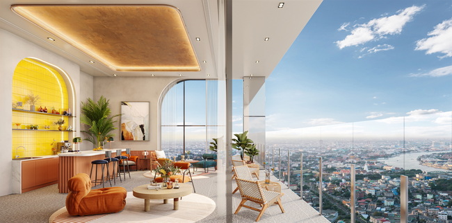 มาพร้อมกับ Double Rooftop Facilities ส่วนกลางรับวิวโค้งแม่น้ำและวิวเมือง มาพร้อมกับซิกเนเจอร์บันไดวน Spiral Twist เชื่อมต่อขึ้นไปที่ Riverview Deck ด้านบน ทำให้สามารถดื่มด่ำกับบรรยากาศเฉลิมฉลองและ Firework ได้ทุกเทศกาล และ Sky Bar จะชิลล์หรือปาร์ตี้ได้ทั้งแบบ Indoor และ Outdoor ในบรรยากาศเดียวกับ Rooftop ของโรงแรมชั้นนำ, Creative Art พื้นที่จุดความครีเอทีฟ ด้วยฟังก์ชันการใช้งานที่หลากหลาย รองรับการทำงานเป็นกลุ่มและแบบส่วนตัว, Gym สนุกเต็มที่กับอุปกรณ์ฟิตเนสครบครัน, Lobby ถ่ายทอดผ่านการใช้เส้นโค้งของโบสถ์ ผสานเข้ากับกลิ่นอายของบ้านเรือนไทย ที่ลดทอนรายละเอียดให้มีความโมเดิร์นมากขึ้น และ Garden Bloc สวนภายในโครงการ ที่นำบริบทดั้งเดิมของย่าน ที่เดิมเป็นชุมชนชาวสวนผลไม้ มาเป็นแรงบันดาลใจในการออกแบบแลนด์สเคป ช่วยเพิ่มกลิ่นอายธรรมชาติในการพักผ่อน