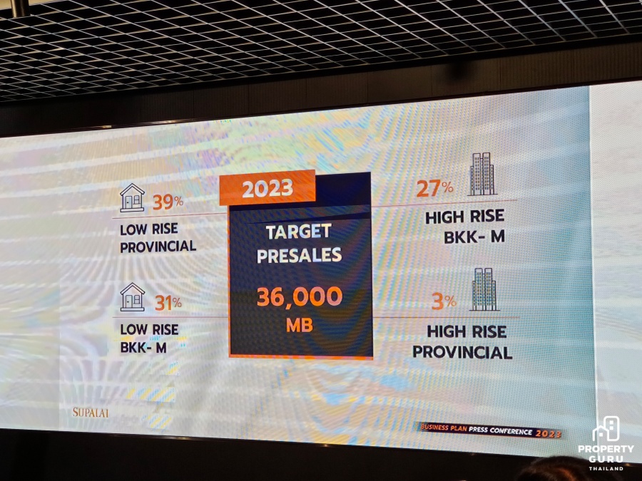 ขณะที่ปี 2566 บริษัทฯ ตั้งเป้าหมายอดขาย 36,000 ล้านบาท และเป้าหมายรายได้ 36,000 ล้านบาท โดยวางแผนเปิดตัวโครงการใหม่ 37 โครงการ แบ่งเป็นโครงการแนวราบ 34 โครงการ มูลค่า 32,700 ล้านบาท และโครงการคอนโดมิเนียม 3 โครงการ มูลค่า 8,300 ล้านบาท คิดเป็นมูลค่ารวม 41,000 ล้านบาท และกำหนดงบประมาณการจัดซื้อที่ดิน 8,000 ล้านบาท ซึ่งในปีนี้บริษัทฯ มุ่งเน้นสู่เป้าหมายที่ยิ่งใหญ่ด้วยความมั่นคง และยั่งยืน เตรียมบุกหนักในโครงการภูมิภาคต่างๆ ในจังหวัดใหม่ๆที่มีทำเลศักยภาพและมีความต้องการที่อยู่อาศัยจำนวนมาก ซึ่งปัจจุบันศุภาลัยพัฒนาโครงการครอบคลุม 28 จังหวัด โดยในปี 2566 เสริมความแข็งแกร่งพัฒนาโครงการใหม่ใน 5 จังหวัดใหม่ ได้แก่ ลำปาง ลำพูน นครปฐม ราชบุรี และจันทบุรี