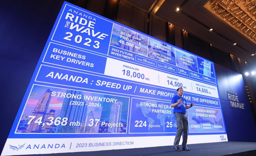 คุณชานนท์ เรืองกฤตยา ประธานเจ้าหน้าที่บริหาร บริษัท อนันดา ดีเวลลอปเม้นท์ จำกัด (มหาชน) กล่าวว่า ภาพรวมตลาดอสังหาริมทรัพย์ปี 2566 ถือเป็นปีแห่งโอกาส โดยเริ่มเห็นสัญญาณบวกต่อเนื่องมาตั้งแต่ช่วงปลายปี 2565 ที่มีแนวโน้มการเติบโตตามสภาพเศรษฐกิจ ซึ่งได้รับปัจจัยบวกจากภาคการท่องเที่ยวและธุรกิจเกี่ยวเนื่องที่กลับมาคึกคักอีกครั้งหลังมีการเปิดประเทศอย่างเต็มรูปแบบ สำหรับอนันดาฯ ผู้นำตลาดคอนโดมิเนียมติดรถไฟฟ้าที่สามารถเข้าถึงและเข้าใจลูกค้าคนเมืองทั้งตลาดคอนโดและแนวราบในเมืองได้เป็นอย่างดีจึงพร้อมเดินหน้าภายใต้แนวคิด “Ananda Ride the Wave” เพื่อเตรียมรับโอกาสที่กำลังจะเข้ามา ซึ่ง อนันดาฯ มองเห็นโอกาสจากการที่ต่างชาติเปิดประเทศโดยเฉพาะประเทศจีนที่มีความต้องการโครงการที่อยู่อาศัยพร้อมอยู่พร้อมโอนบนทำเลศักยภาพ นอกจากนี้ อนันดาฯ มีความพร้อมเป็นอย่างมากเพื่อรองรับดีมานด์ดังกล่าว โดยมีสินค้าที่ดีและมีคุณภาพพร้อมอยู่พร้อมโอนบนทำเลที่ดีที่สุดของกรุงเทพฯ (Blue Chip Location) ครบทุกเซกเม้นท์ ในราคาที่ยังไม่ได้ปรับตัวสูงขึ้นตามราคาของที่ดินที่ปรับสูงขึ้นอย่างต่อเนื่อง และยังคงเชื่อมั่นในศักยภาพคอนโดติดรถไฟฟ้าว่ายังเป็นสินค้าที่สามารถตอบโจทย์ความต้องการใช้ชีวิตของคนเมืองได้เป็นอย่างดี