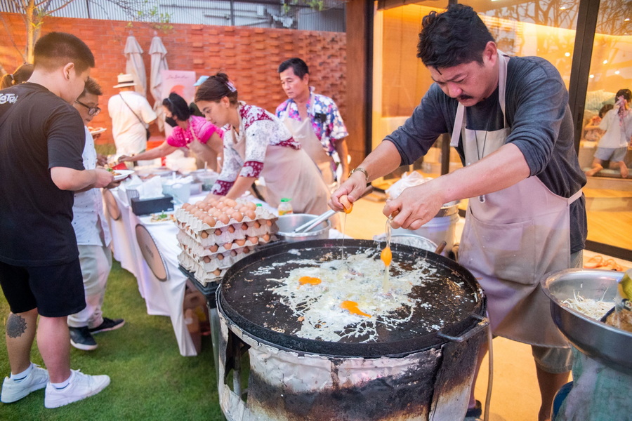 บรรยากาศภายในงานเมื่อแดดร่ม ลมตก แขกทยอยมาร่วมงาน เริ่มสนุกกับกิจกรรมถ่ายภาพบริเวณซุ้มถ่ายภาพที่ได้จัดเตรียมไว้ พร้อมชิมอาหารและเครื่องดื่ม เจ้าเด็ด เจ้าดัง ที่คัดสรรมาแต่ของอร่อย อาทิ ขนมเบื้อง ขนมครก โอวทึ้ง ลอดช่องนายกี๋ ก๋วยเตี๋ยวหมูน้ำแดง หอยทอด โรตี พาสต้า เป็นต้น