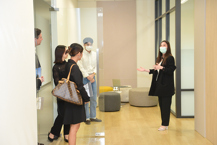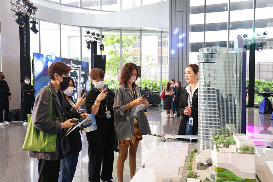 โดยบรรยากาศภายในงานเต็มไปด้วยความอบอุ่น ได้รับการตอบรับทั้งจากพาร์ทเนอร์และตัวแทนนายหน้าอสังหาริมทรัพย์ไทยและต่างประเทศจำนวนมาก ที่เข้ามาเยี่ยมชมโครงการทั้งบริเวณพื้นที่ภายนอกและภายในอาคารซึ่งประกอบไปด้วยพื้นที่ในส่วนออฟฟิศและรีเทล พร้อมเยี่ยมชมห้องตัวอย่างโมเดล JUMP&SYNC สำนักงานรูปแบบใหม่ที่มีความโดดเด่นเรื่องการออกแบบพื้นที่ให้มีความยืดหยุ่นสำหรับการจัดวางเฟอร์นิเจอร์สำนักงาน แบบพร้อมเข้าทำงานในลักษณะต่าง ๆ ตามความเหมาะสมของแต่ละธุรกิจ ไม่ว่าจะเป็น Workstation, Meeting Booth, Private workspace ฯลฯ และห้องประชุมต่าง ๆ เพื่อให้ธุรกิจเกิดประสิทธิผลในการทำงานอย่างเต็มที่และสามารถต่อยอดการเติบโตขึ้นได้อย่างรวดเร็ว
