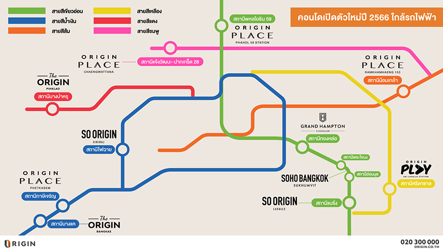 แม้กลยุทธ์หลักจะเน้นการยกทัพธุรกิจในเครือให้ครอบคลุมพื้นที่ทั่วประเทศ (Nationwide Serve) ทำให้ปีนี้จะได้เห็นโครงการคอนโดมิเนียมในเครือออริจิ้น ออกสู่พื้นที่ต่างจังหวัดนอกเหนือเขตพัฒนาพิเศษภาคตะวันออก (EEC) เป็นครั้งแรก ขณะเดียวกัน ออริจิ้นก็ยังไม่ทิ้งทำเลยุทธ์ศาสตร์ “ใกล้รถไฟฟ้า” ในกรุงเทพฯ-ปริมณฑล อีกหนึ่ง Key Success ที่ทำให้คอนโดมิเนียมของออริจิ้น สามารถครองใจคนเมืองทุกเพศทุกวัย จนมียอดขายคอนโดมิเนียมในไตรมาสแรกของปี 2566 ถึง 9,459 ล้านบาท