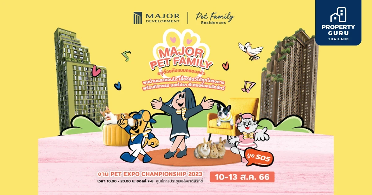 บริษัท เมเจอร์ ดีเวลลอปเม้นท์ จำกัด (มหาชน) ผู้นำด้านการพัฒนาธุรกิจอสังหาริมทรัพย์ระดับลักชูรีและคอนโดมิเนียมเลี้ยงสัตว์ได้ ยกคาราวานความสุขของก๊วนสัตว์เลี้ยงแสนรัก มาโชว์ออฟความซุกซนให้ Pet Lover ได้ยิ้มกรุ้มกริ่มกับความน่ารัก ในงาน PET EXPO CHAMPIONSHIP 2023 กับคอนเซ็ปต์ใหม่ที่ยกกระชับความสัมพันธ์มากขึ้น จากเพื่อนซี้ "PET FRIENDLY” สู่การเป็นครอบครัวเดียวกัน "MAJOR PET FAMILY RESIDENCES" บนมุมมองความคิดและนิยามความเชื่อที่ว่า “สัตว์เลี้ยงเป็นมากกว่าเพื่อน เพราะเขาคือ ครอบครัว”