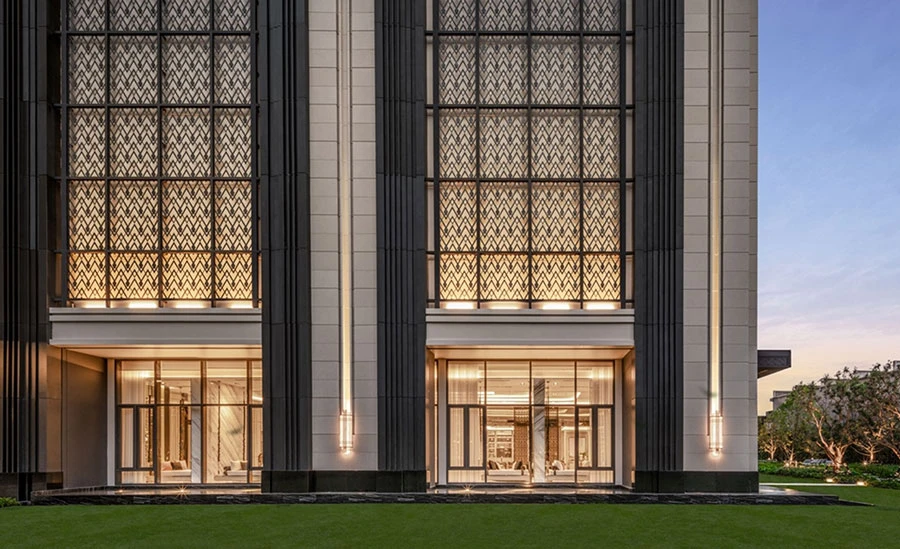 (1) SOPHISTICATION DESIGN ตั้งใจรังสรรค์ตั้งแต่การออกแบบภายนอก จรดพื้นที่ภายในทุกมิติให้เป็นที่สุดของสถาปัตยกรรม ด้วยการออกแบบพื้นที่ภายในห้องพักแบบพิเศษให้มีส่วน Cantilever ที่ยื่นออกมาเพื่อเปิดมุมมองได้กว้างกว่าเดิม รวมถึงพื้นที่ส่วนกลางขนาดใหญ่กว่า 4 ไร่ สู่การรับวิวสวยของทัศนียภาพ