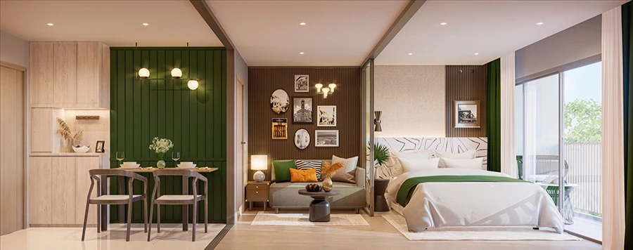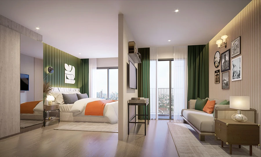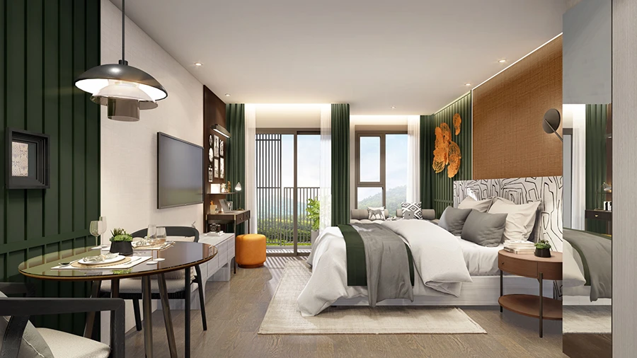 รูปแบบห้องพักมี 5 แบบ ประกอบด้วย ห้อง Studio ขนาด 25 ตร.ม., ห้อง Living Suite ขนาด 28 ตร.ม. ได้รับการออกแบบมาเพื่อการอยู่อาศัย ด้วยระเบียงขนาดใหญ่ ตอบโจทย์การอยู่อาศัยเอง ห้อง Leisure Suite ขนาด 28 ตร.ม. ด้วยขนาดห้องเท่ากัน เเต่มีการออกแบบให้ระเบียงเล็กลง เพื่อเพิ่มพื้นที่ในห้อง เสมือนเข้าพักในโรงเเรม ตอบโจทย์การลงทุน ห้อง Master Suite ขนาด 34 ตร.ม. และห้อง Ocean suite ขนาด 47 ตร.ม. โดยเฉพาะห้อง Master Suite และ Ocean Suite ซึ่งเป็นห้องขนาดใหญ่แบบ Pool Access ที่สามารถเดินลงสระว่ายน้ำจากห้องพักได้เลย นอกจากนี้ภายในโครงการยังมี Retail Shop ที่รวบรวมร้านชั้นนำ ตอบโจทย์ กิน ดื่ม ช้อป ครบจบในที่เดียว มุ่งสร้างคอมมูนิตี้ใหม่สำหรับรองรับกลุ่มผู้อยู่อาศัย ตามแนวคิด A Luxury Leisure Mixed-Use และยังจัดเต็มด้วยส่วนกลางขนาดกว่า 3,000 ตารางเมตร สอบถามรายละเอียดเพิ่มเติม โทร. 1498