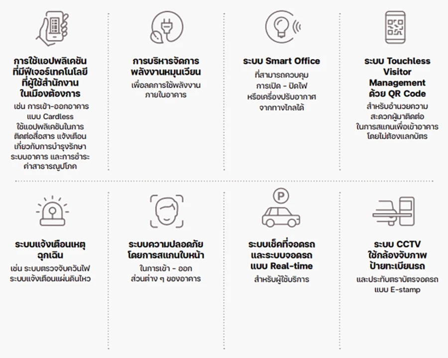 1) ความปลอดภัยของผู้ใช้อาคารสำคัญเป็นอันดับหนึ่ง ระบบเตือนภัย อุปกรณ์เซฟตี้คุณภาพ การฝึกซ้อมรับมือที่ได้มาตรฐาน รวมถึงการประยุกต์ระบบอัจฉริยะต่าง ๆ เพื่อเสริมประสิทธิภาพดูแลชีวิต-ทรัพย์สิน เป็นหนึ่งในบริการขั้นพื้นฐานที่ต้องรักษาคุณภาพไว้ในระดับสูง