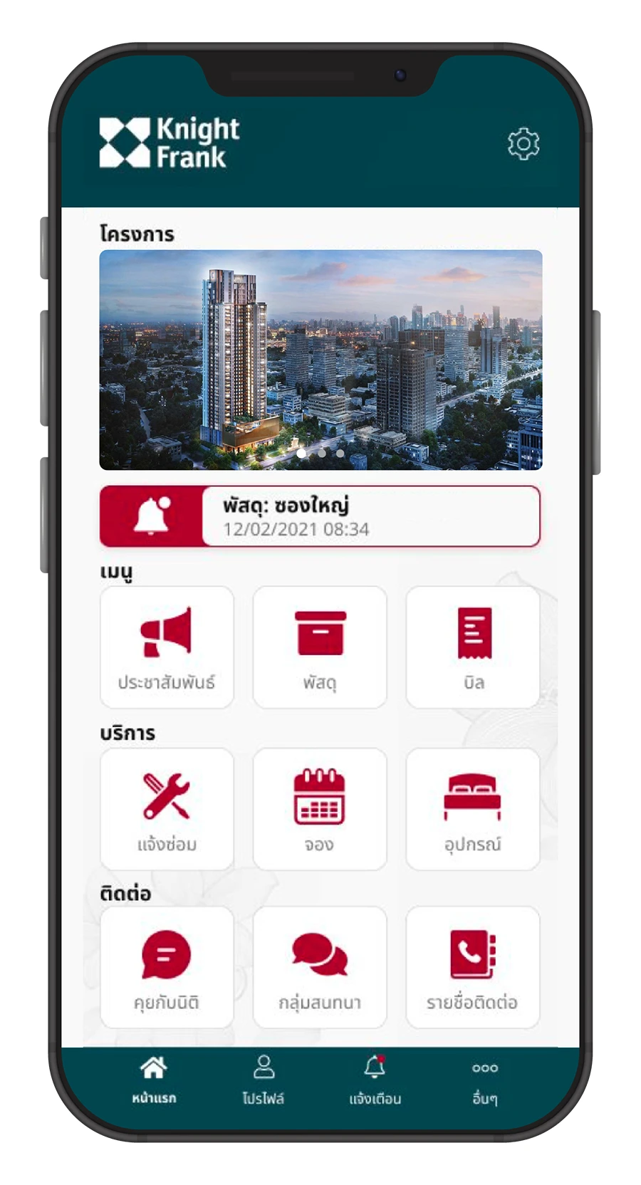 การแจ้งขอรับบริการซ่อมบำรุง ช่วยให้กระบวนการแจ้งปัญหาเกี่ยวกับตัวอาคารและการซ่อมบำรุงทำได้ง่ายขึ้น มั่นใจได้ว่าการตอบกลับจะเป็นไปอย่างรวดเร็วและติดตามงานได้อย่างมีประสิทธิภาพ ระบบจะกำหนดตารางการตรวจสอบอุปกรณ์ มอบหมายงาน และแจ้งผู้ที่เกี่ยวข้องให้รับทราบ การแจ้งเตือนพัสดุ และ การจองพื้นที่ส่วนกลาง ก็รวมอยู่ในแอปพลิเคชันนี้เช่นกัน