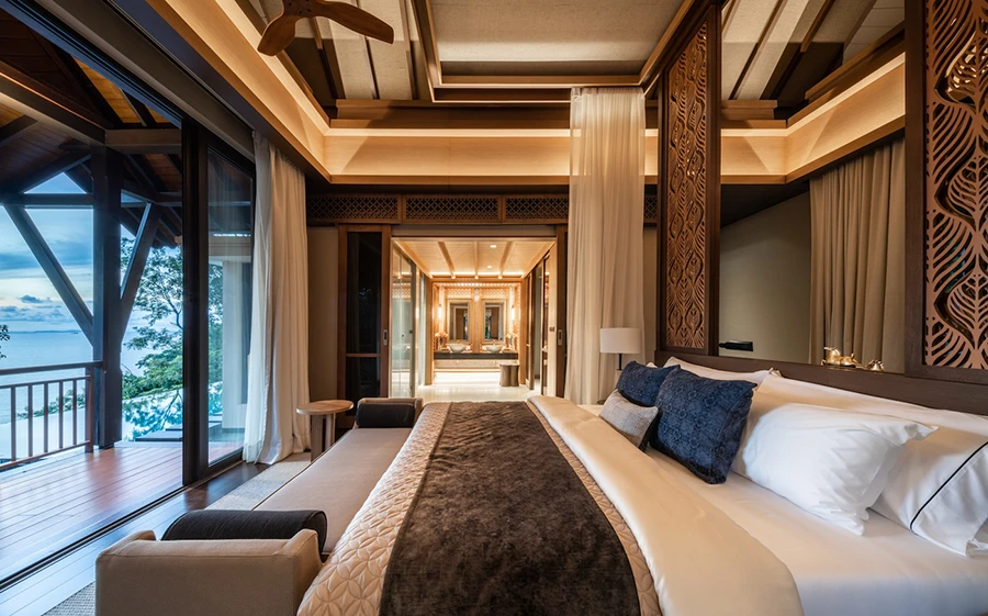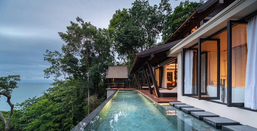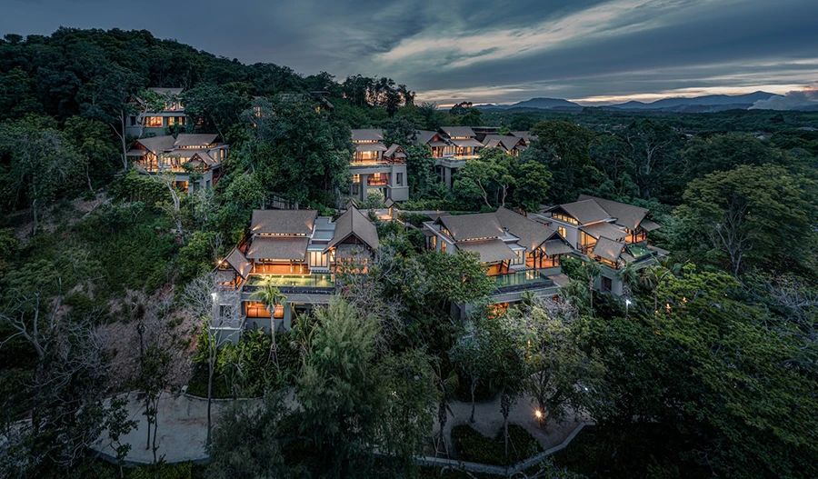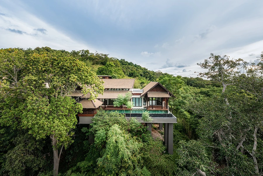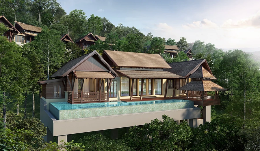 คุณสิริ ธรรมปัญญวัฒน์ กรรมการผู้จัดการ บริษัท นาวาดีไซน์สตูดิโอ จำกัด กล่าวว่า “คอนเซ็ปต์ในการออกแบบสถาปัตยกรรมของโครงการคือ การนำเสนอความงามในแบบไทยร่วมสมัยที่มีความลักชัวรี มีความเป็นส่วนตัว ทุกอาคารถูกออกแบบให้กลมกลืนไปกับสภาพแวดล้อมเดิมซึ่งมาพร้อมต้นไม้ขนาดใหญ่ โดยมีการรักษาต้นไม้ดั้งเดิมรอบตัวบ้านไว้ให้มากที่สุด บ้านทุกหลังถูกออกแบบให้อยู่ในระดับความสูงที่แตกต่างกัน ลดหลั่นกันลงมาตามเนินเขา เพื่อให้สามารถชื่นชมความงามของทะเลได้จากทุกพื้นที่ของบ้าน ทุกห้องของบ้านแต่ละหลังถูกออกแบบให้มีฝ้าเพดานสูงและมีหน้าต่างขนาดใหญ่เพื่อมอบทิวทัศน์ที่งดงามของท้องทะเลอ่าวไทยที่มีทั้งชายหาดและเกาะต่าง ๆ อีกทั้งยังช่วยนำแสงสว่างและลมธรรมชาติเข้ามาในอาคารให้มากที่สุด เรามีการนำเทคโนโลยีทางอาคารที่ทันสมัยมาประยุกต์ใช้ในโครงการเพื่อให้ตอบโจทย์ชีวิตที่สะดวกสบาย บ้านทุกหลังมีสระว่ายน้ำและระเบียงส่วนตัวเพื่อเป็นสเปซในการชมความงดงามของชายหาดและท้องทะเลไปด้วยกัน”